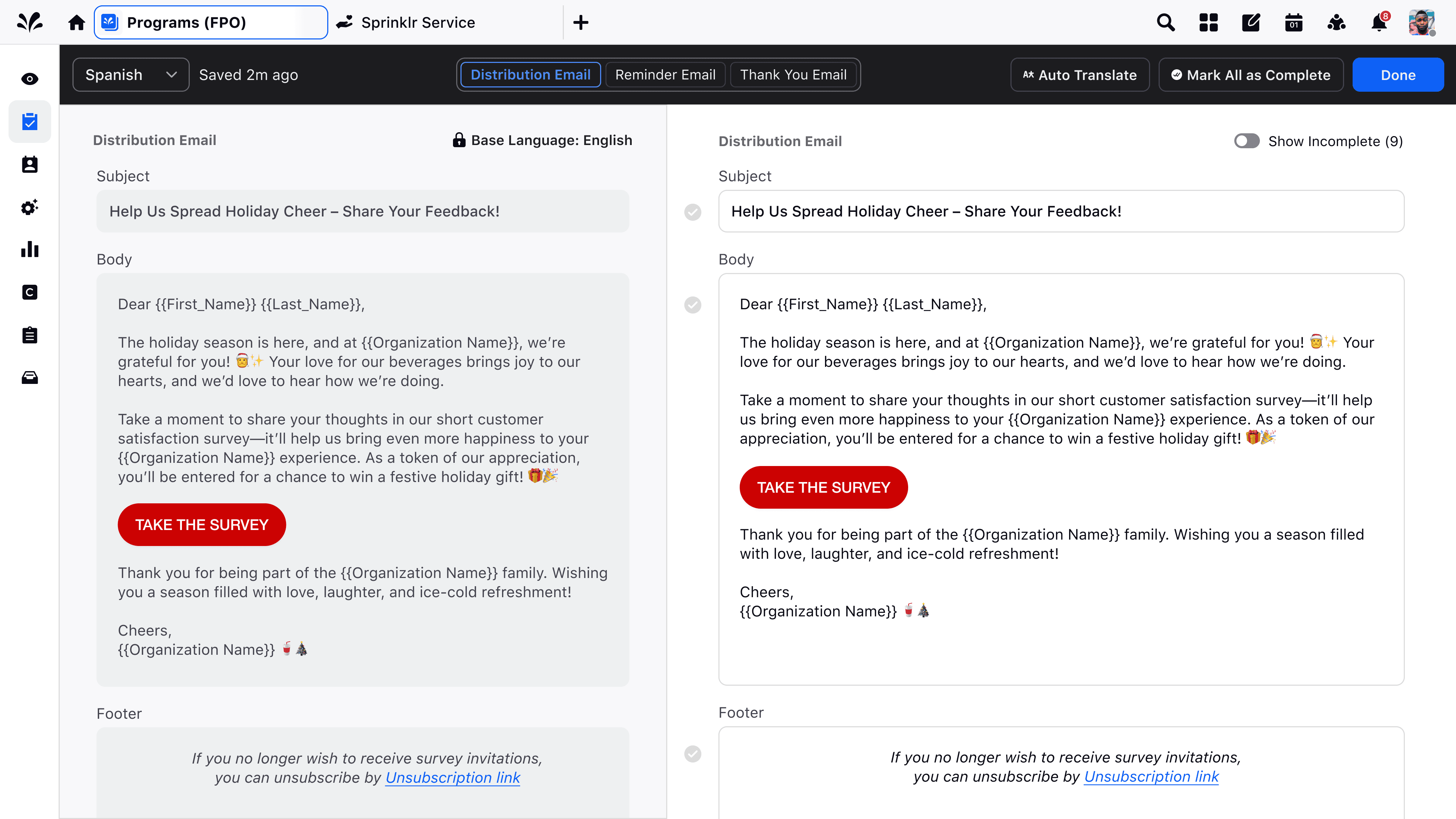 Integrates language delivery directly into the distribution flow, no need for separate setups or segmented campaigns.