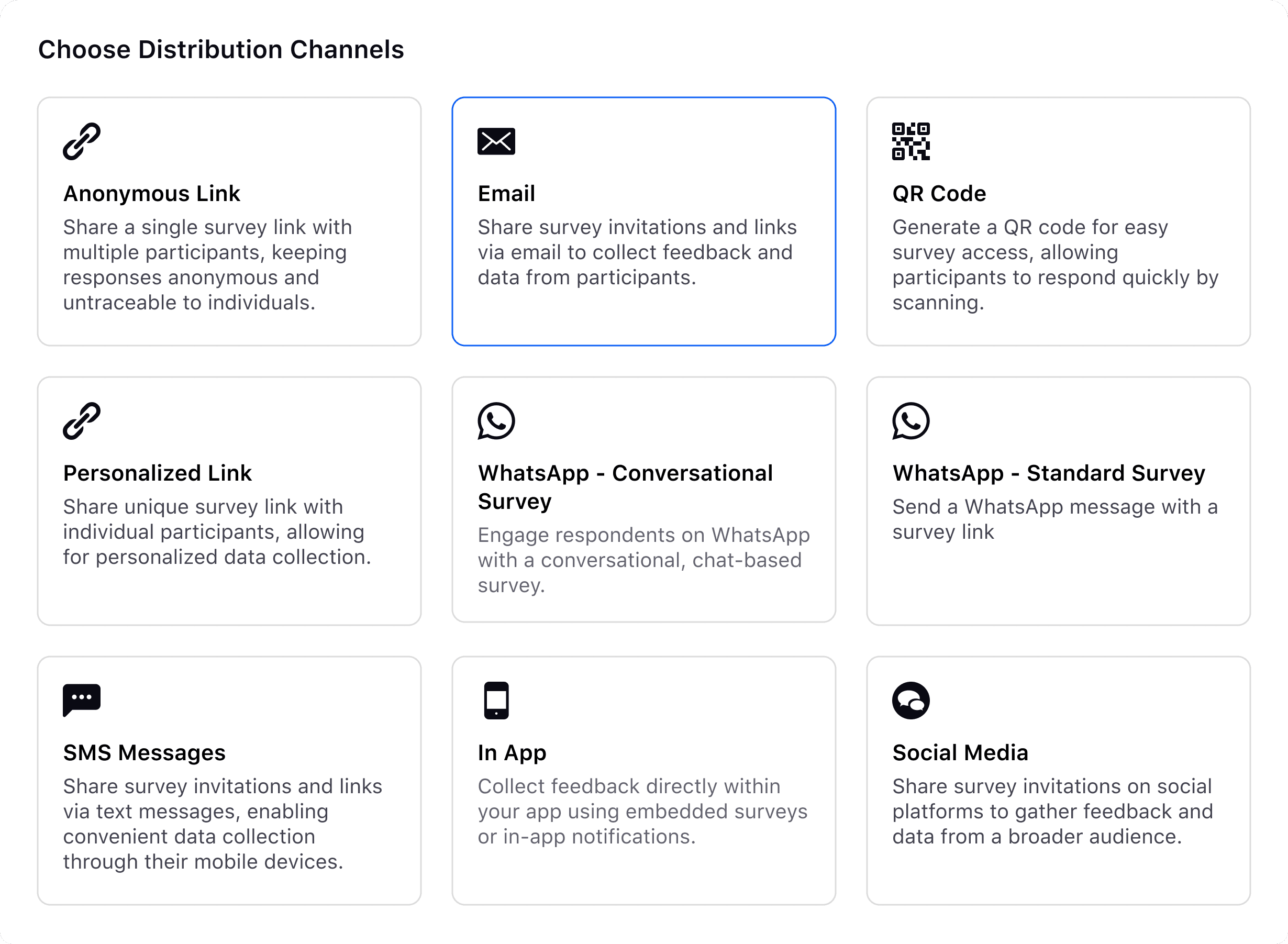 Delivers surveys intelligently based on audience preferences and context, improving both reach and response quality.