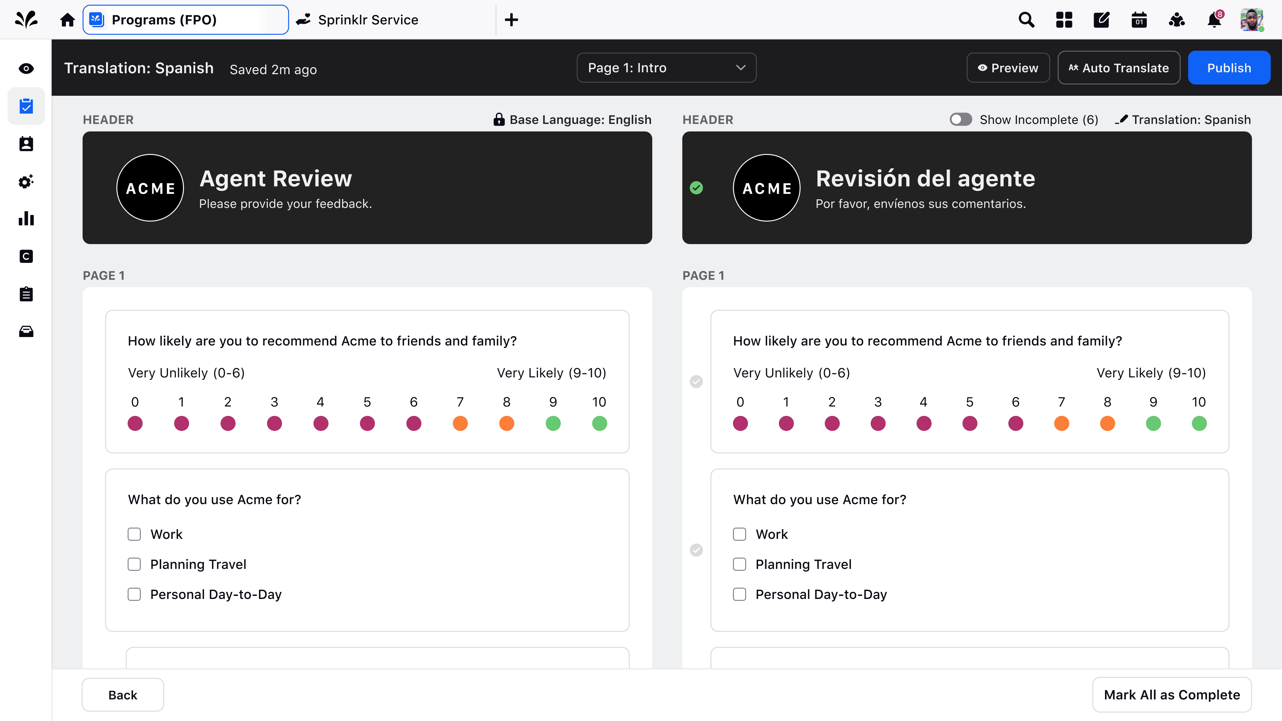 Preview surveys exactly as customers will see them, making it easier for teams to align before launch.